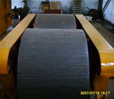 對輥式破碎機(jī)主要由輥輪組成、輥輪支撐軸承、壓緊和調(diào)節(jié)裝置以及驅(qū)動裝置等部分組成。對輥式破碎機(jī)主要采用特殊耐磨齒輥高速旋轉(zhuǎn)對物料進(jìn)行劈裂破碎(傳統(tǒng)齒輥破碎機(jī)采用低速擠壓破碎),齒輥是對輥式破碎機(jī)易磨損的部件之一。